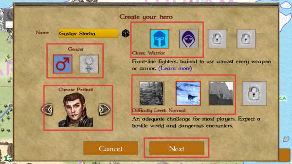 2.给角色命名后,选择性别、形象、类别、难度,然后点击【下一步】。